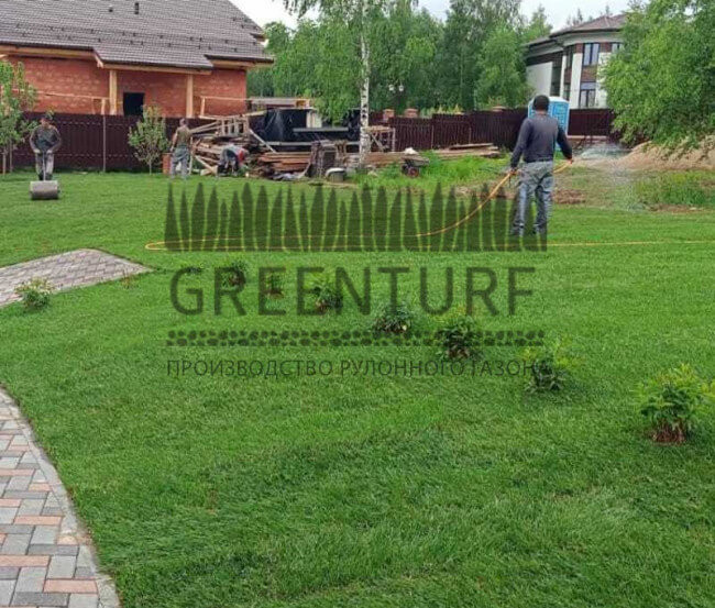 Не рекомендуется ходить по газону в первые 2-3 недели, чтобы не повредить молодой дерн.